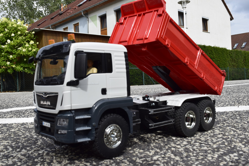 Der MAN Kipper besteht aus einem Bruder Modell, welches mit dem Umbau Set der RC-Bruderbaustelle umgebaut wurde.