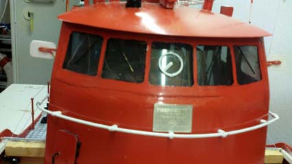 Am Aufbau die Fensterfront der drei Fenster auf die Orginaloptik mit Fünf Fenstern umgebaut, Bullaugen am Rumpf eingesetzt, die Getriebemotorern raus, Direktantrieb rein,die Ruderanlage gegen zwei Beckerruder ersetzt, Querstrahlruder eingebaut, Ankertaschen eingepasst, die Dahmenwinde eingebaut, einen Raucherzeuger und die Abgasöffnung hinten Steuerbord und Backbord eingepasst, Das Beiboot runter eine Schlauchboot umgebaut, damit es dem Orginal möglichst ähnlich wird, dieverse Lüfter und den Halogenstrahler am Heck montiert, die Blaue Tafel nachgerüstet und diverse Antennen und Kleinteile angebaut. Die Bordwand abgeschliffen und die Reeling erneuert. Eine neue Lackierung und das Beier Soundmodul ergaben das überholte Modell.