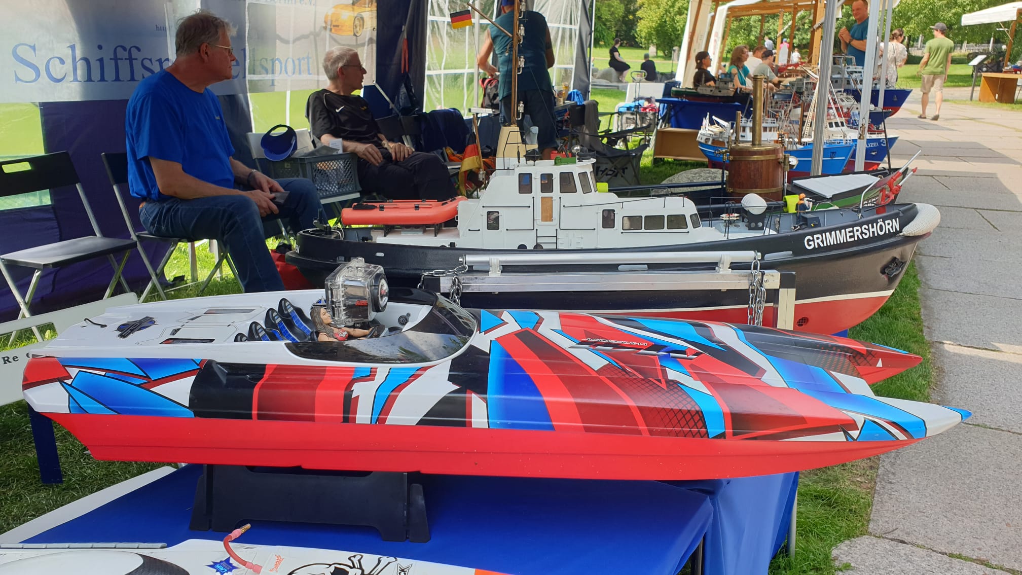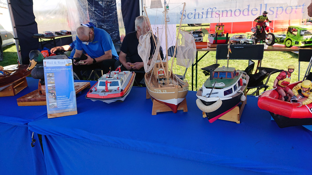 Es kamen wieder viele geladene und spontane Gäste, die ihre liebevoll gebauten Modelle zur Schau stellten. Egal ob auf dem Stand oder auf dem Wasser, überall waren die Modellbootkapitäne an Aktion.