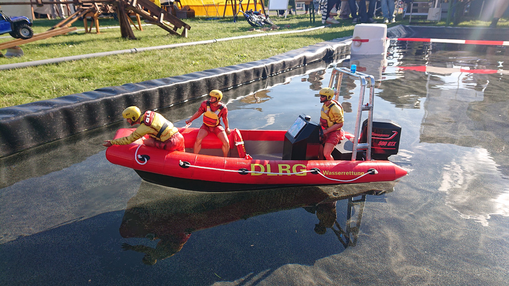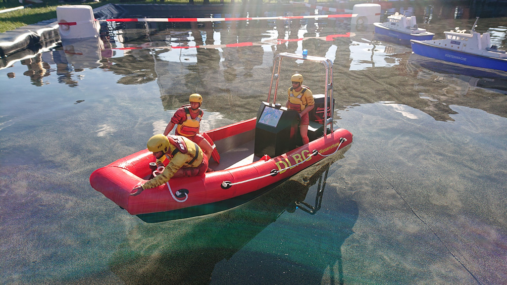 Während des Druckes des Rumpfs entstand die Idee dieses als ein DLRG-Wasserrettungsboot aufzubauen. Nach einigen Recherchen im WWW nahm auch dieses Gestalt an.