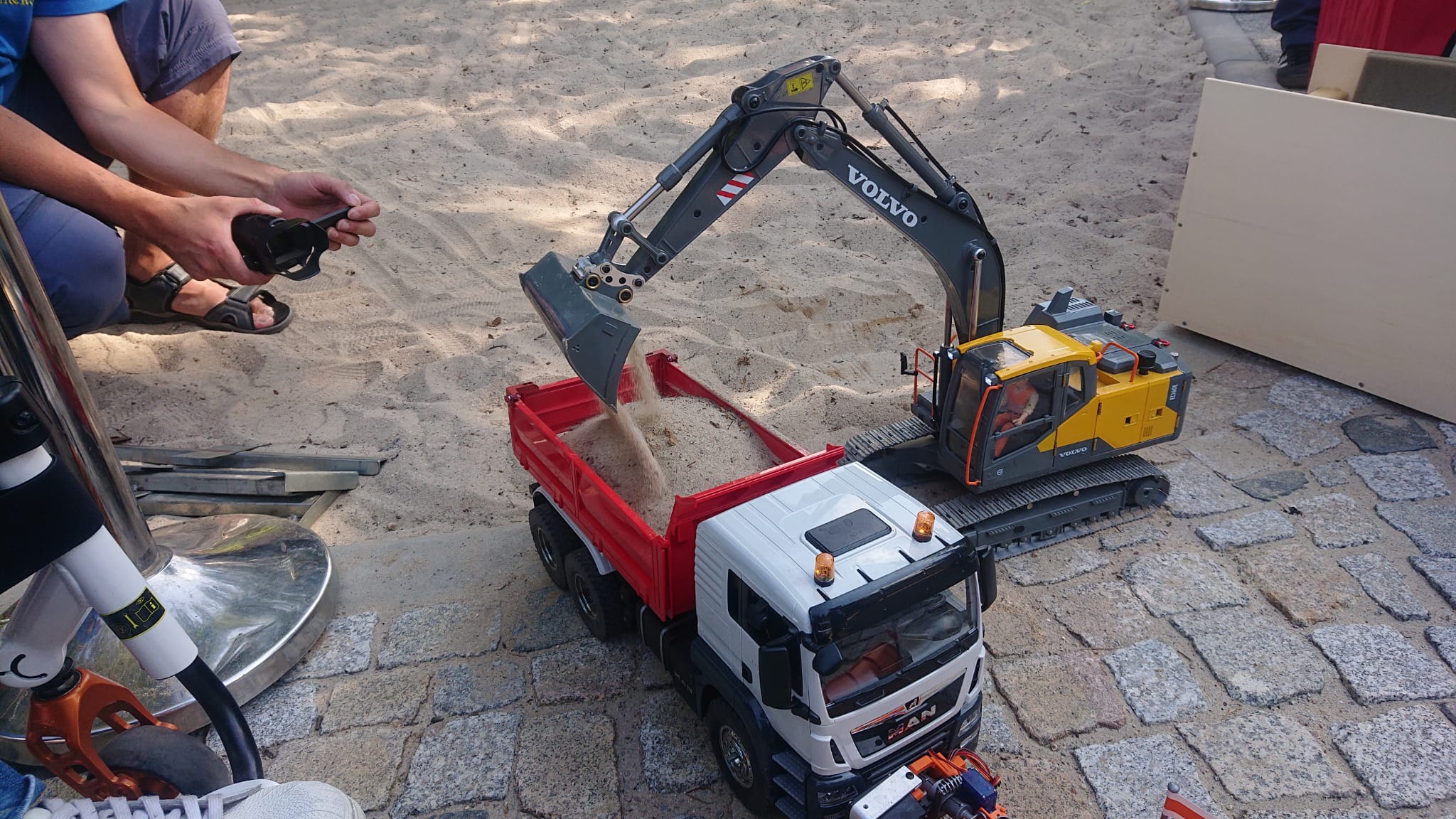 In der neu gestalteten Spiellandschaft durften wir neben dem Kletterturm die Buddelkiste verunstalten. Brücken, Unterführungen und Kanäle wurden für die Crawler gebuddelt.