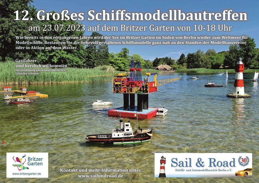 auch wir waren in diesem Jahr wieder häufiger mit unseren Modellen im Britzer Garten anwesend. Haben zu der Freude unserer Besucher und der eigenen Schiffsmodelle, Autos und zum 11. Großen Schiffsmodelltreffen eine Bohrinsel vorgestellt. Diese wurde uns von Herrn Schrader jr. aus dem Nachlass seines Vaters übergeben. Der Sail & Road bedankt sich für dieses Modell und wird es Gut pflegen. Unsere Saison war wieder vollgepackt mit den Veranstaltungen im Britzer Garten und zwei - drei Ausflügen in Fremde Gewässer. Wie da waren, ein Besuch bei den Modellbaufreunden Mariendorf am Blümelteich, die Teilnahme am Reservistenfest auf dem ehemaligen Flughafen Gatow sowie die Unterstützung des ADAC mit Speedbooten, zum Motorbootrennen auf der Dahme in Berlin Grünau und die Teilnahme an der Ausstellung "Leinen Los" im Deutschen Museum für Verkehr und Technik. Über dies Alles haben wir es versäumt auf diesem Medium unseren interessierten Gästen ein Feedback zu geben.